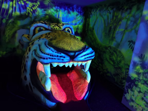 Rockwork and native scenery recreated indoors and out. Murals and sculpture. Natural, wild and authentic theming, or imaginary, fantasy locations using ultra violet lit paint. Design and concept sketches.